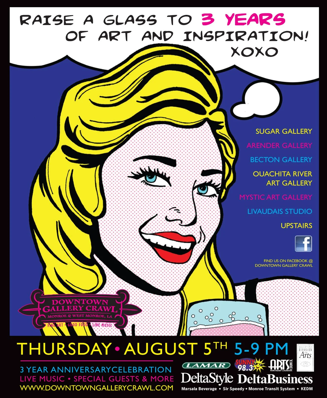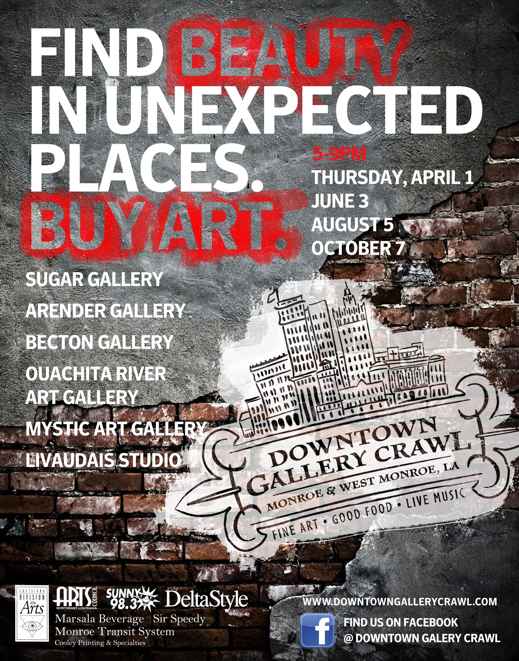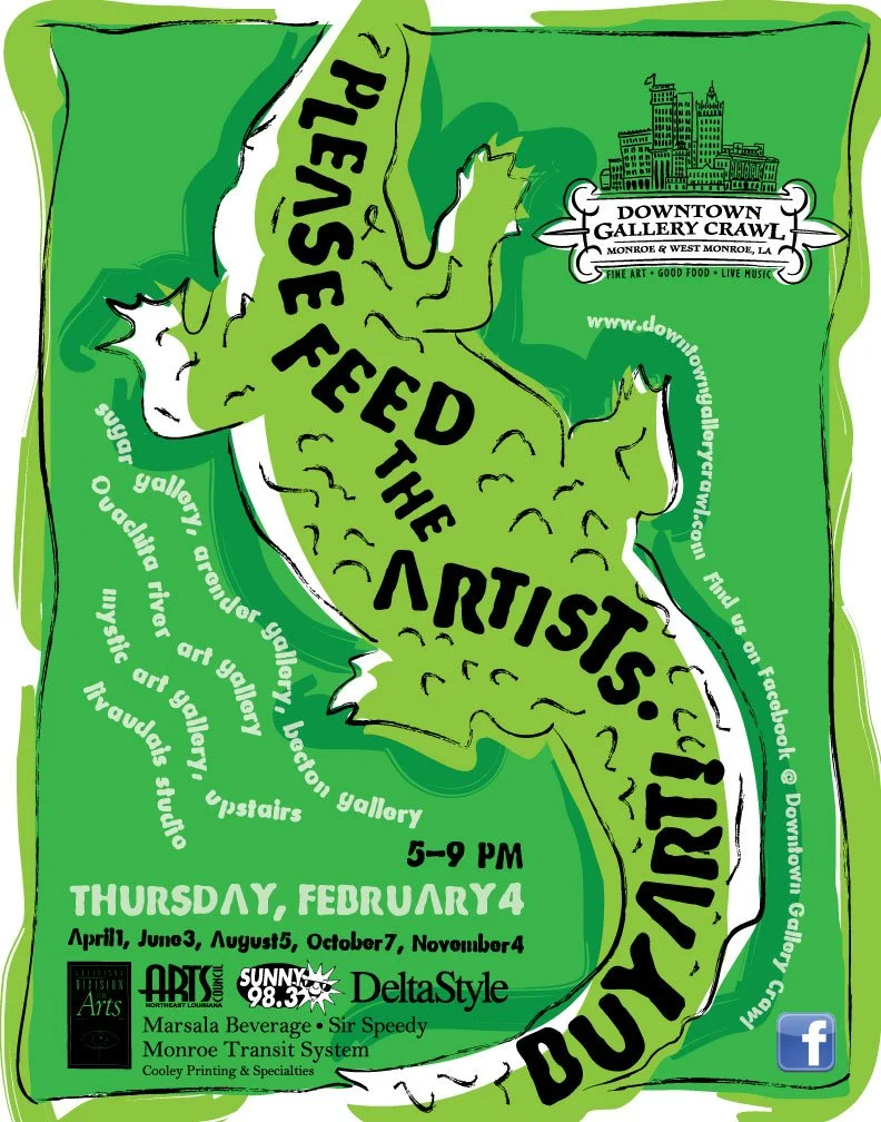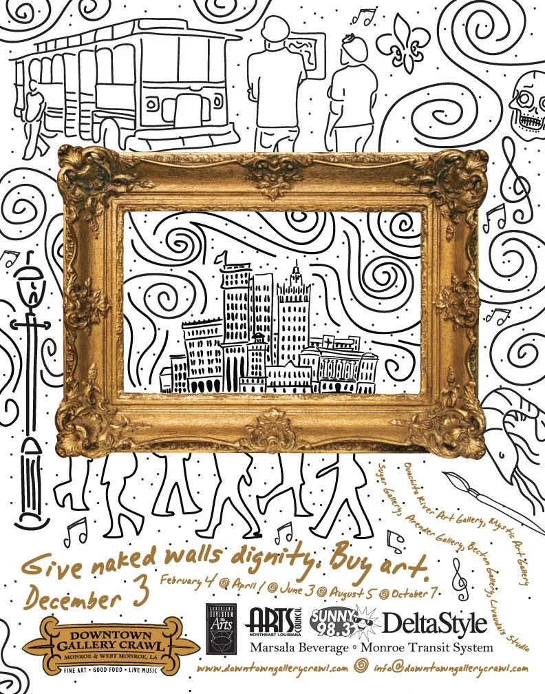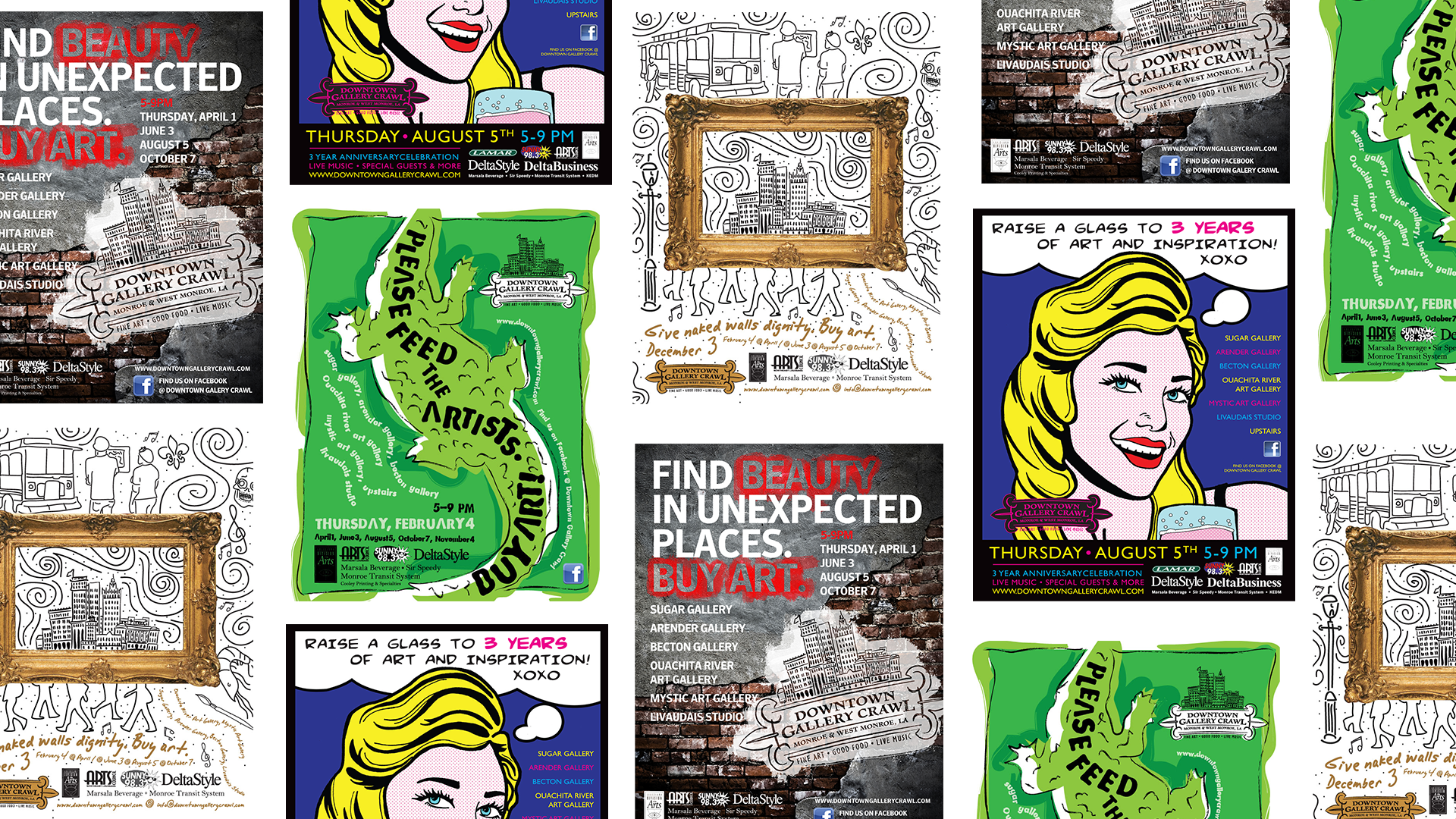 Illustrated posters for the Downtown Gallery Crawl in Monroe, LA